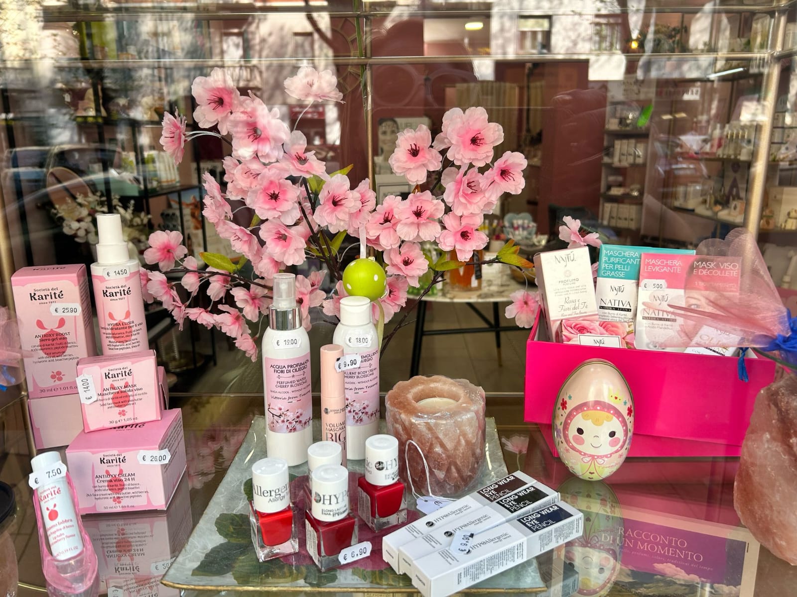 La piccola boutique di bellezza ha la particolarità di offrire la metamorfosi stagionale, cambiando sistematicamente aspetto in funzione del periodo dell’anno, offrendo soluzioni adatte al calendario sia per quanto riguarda i prodotti biocosmetici che per gli oggetti fashion a loro abbinati.